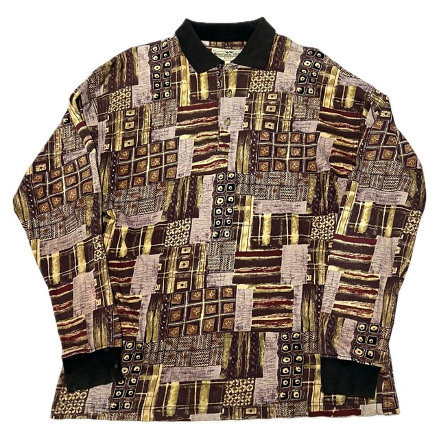 90's Geometric dot pattern polo shirt