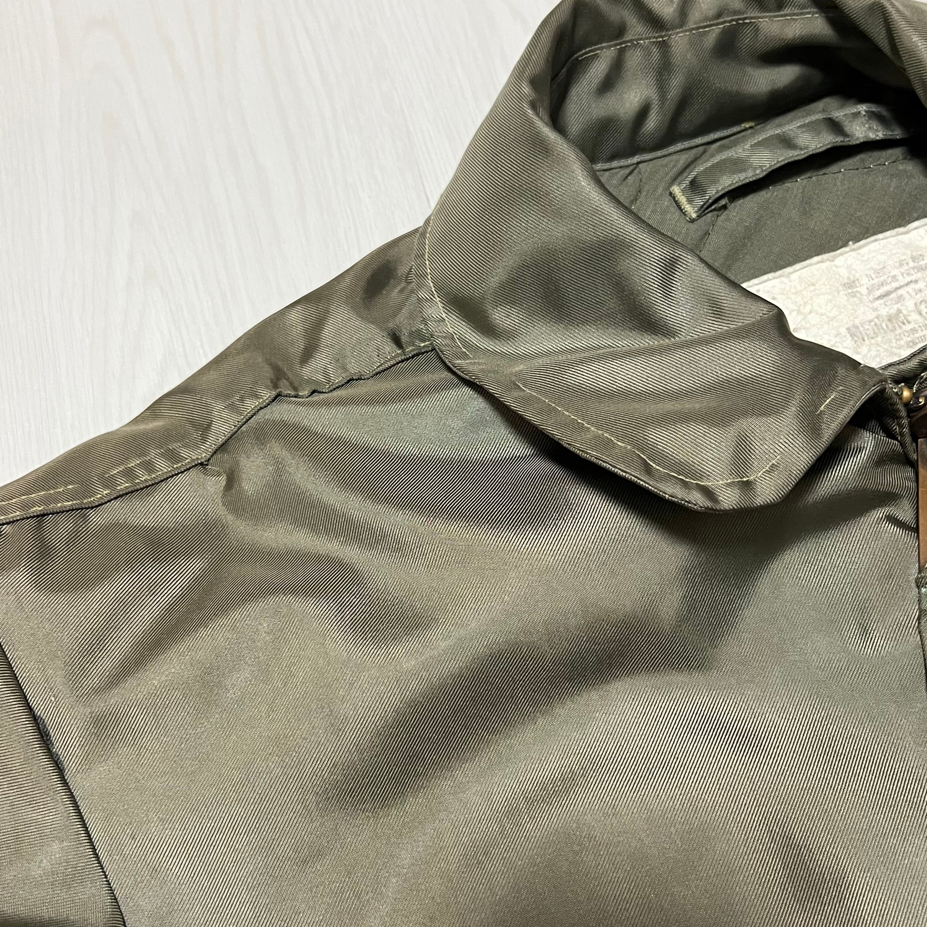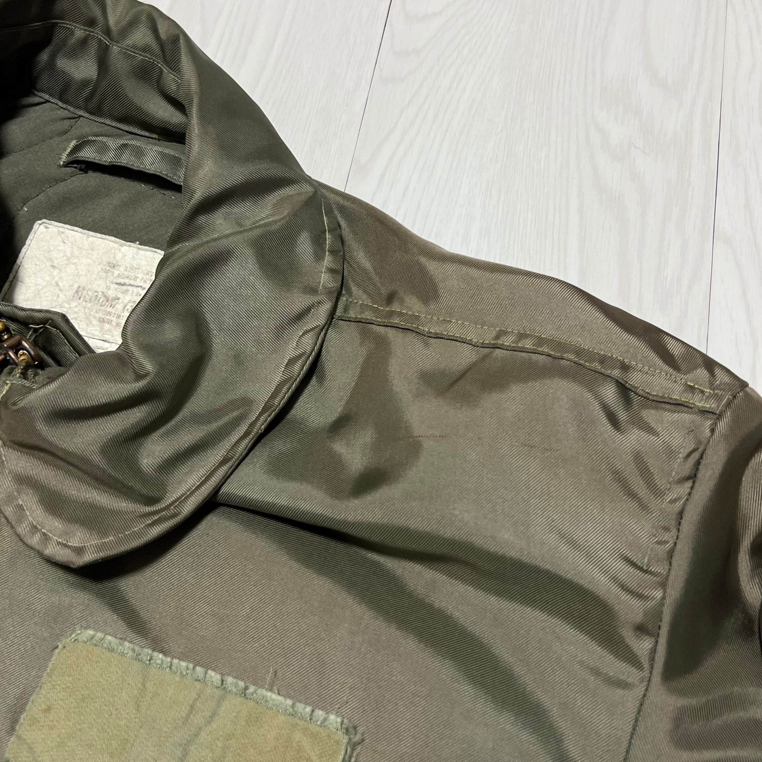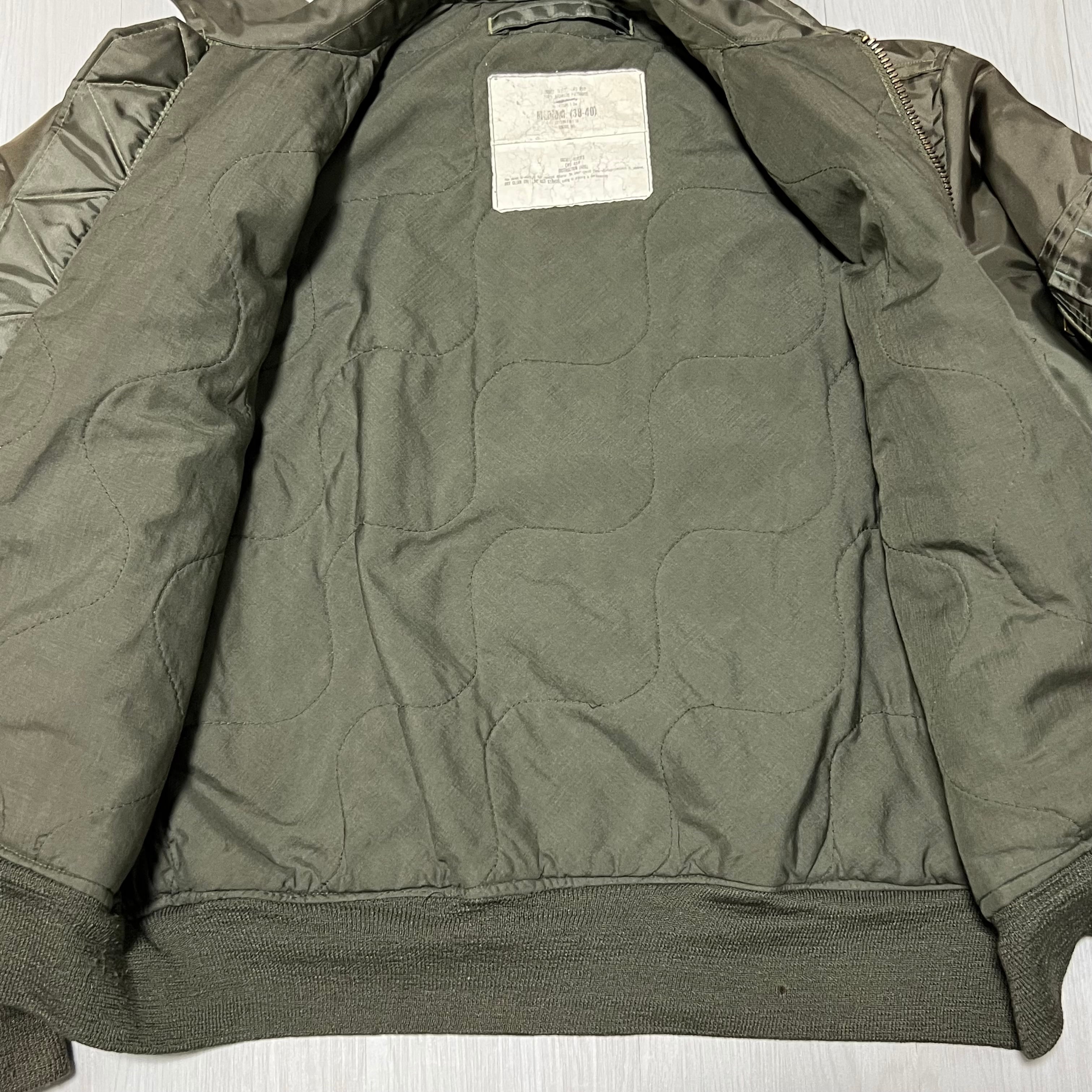 タグが消えかかってしまっていますがジップや作りで80年台のCWU-45/P フライトジャケットと考えられます。