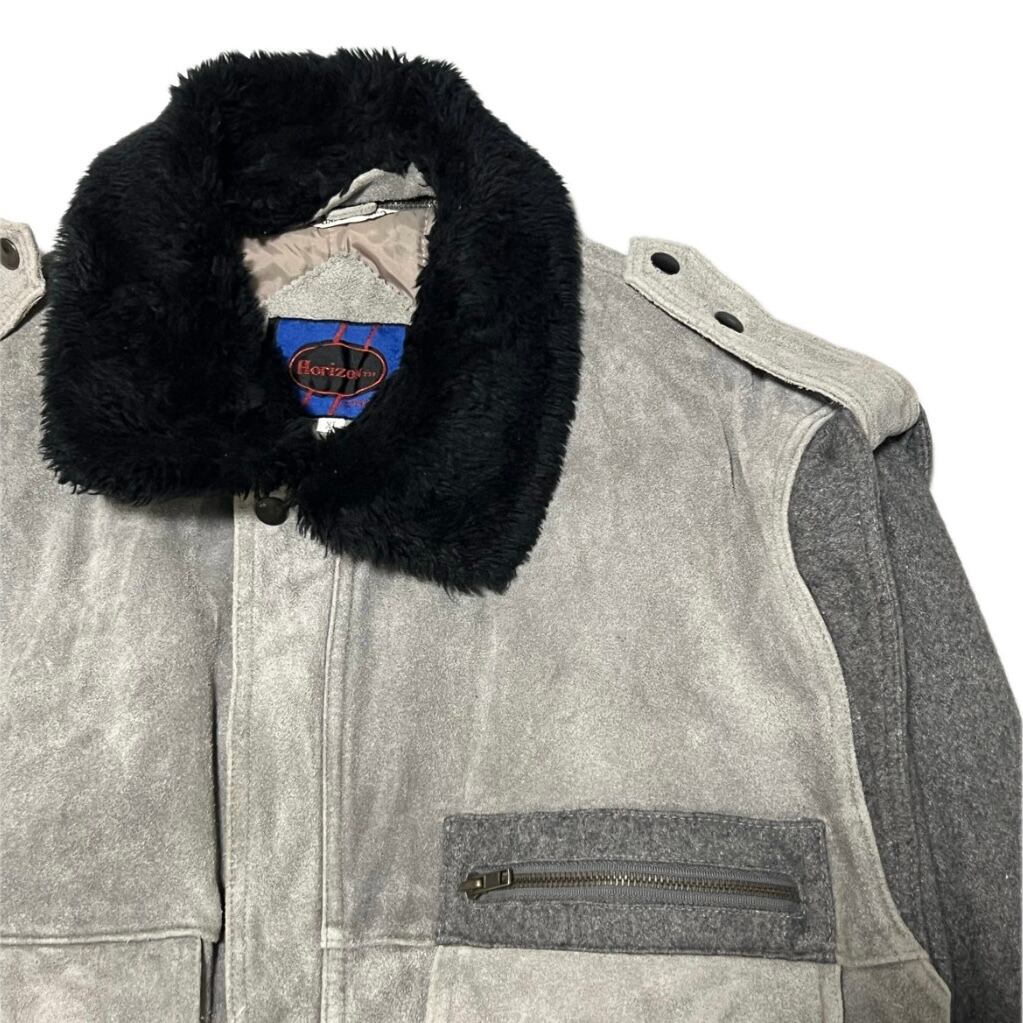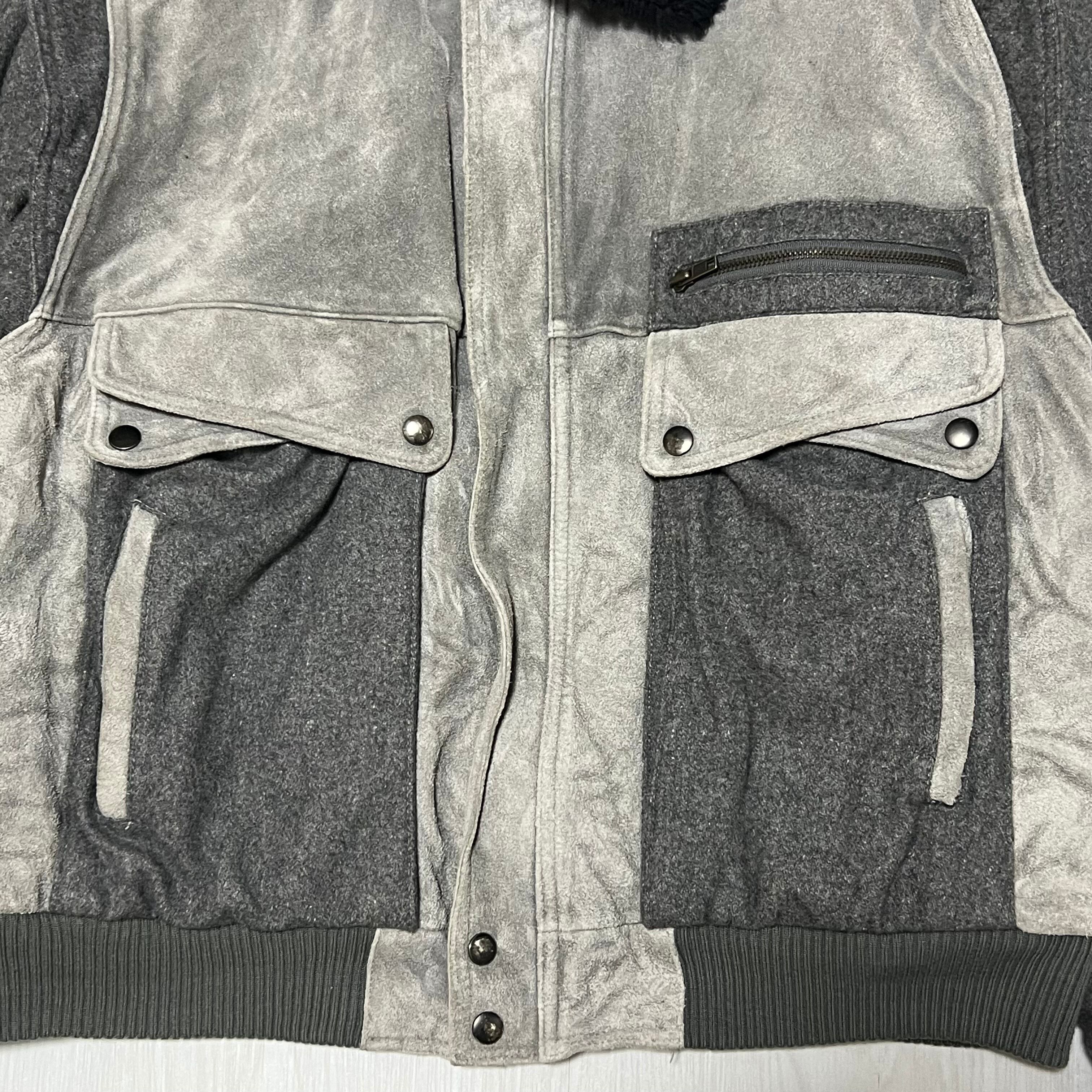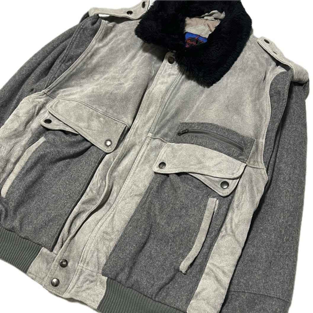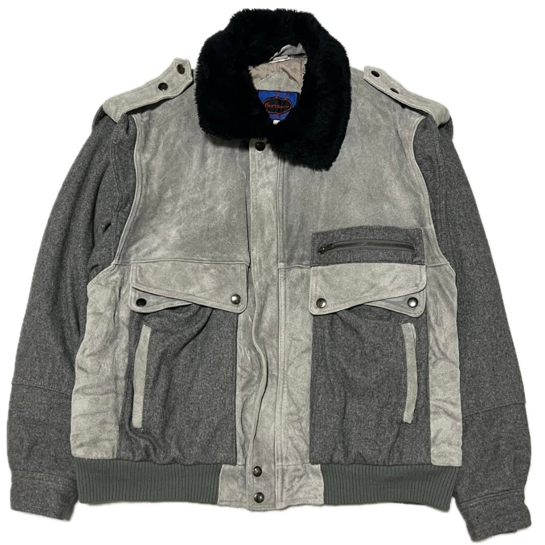 フライトジャケット 風 レザー ウール ジャケット グレー ブラック 灰色 黒 ファー ブルゾン ミリタリージャケット A-2 G-1 A2 G1 軍物 古着