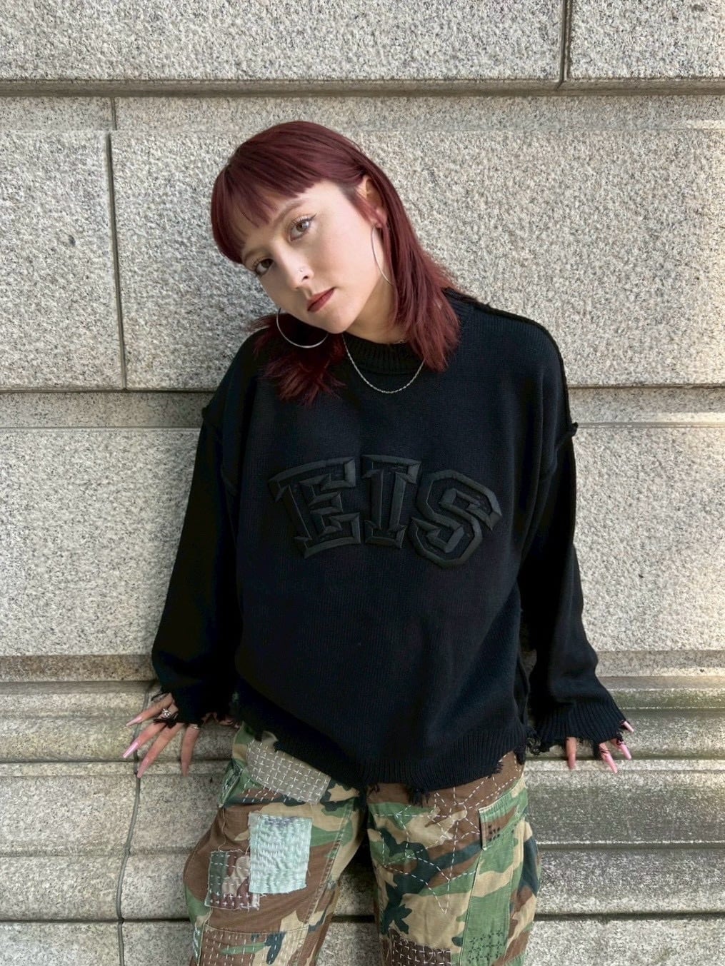 3D Embroidery Crushed Knit (Black)