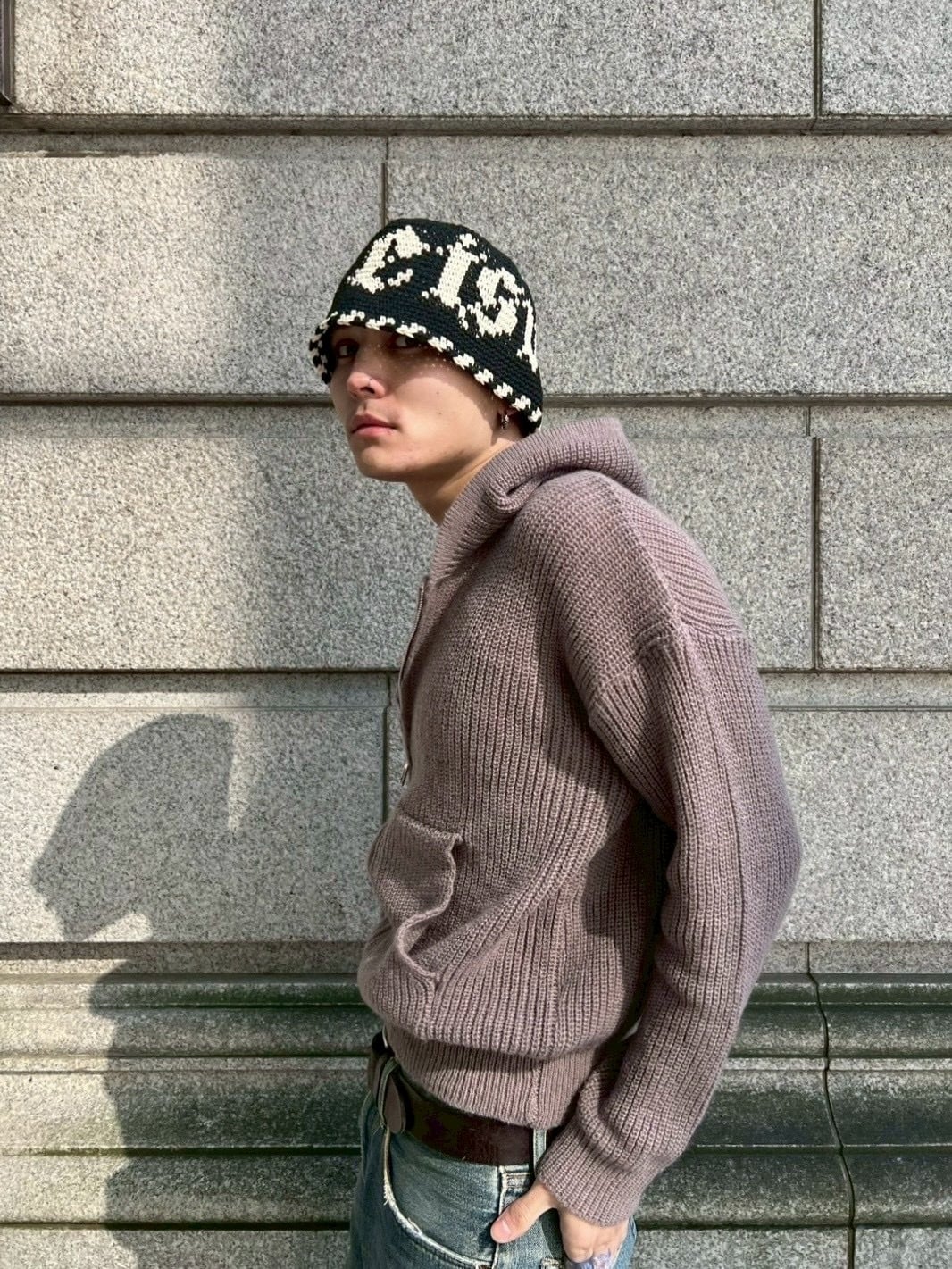 Old English Loose Gauge Cotton Hat (Black)