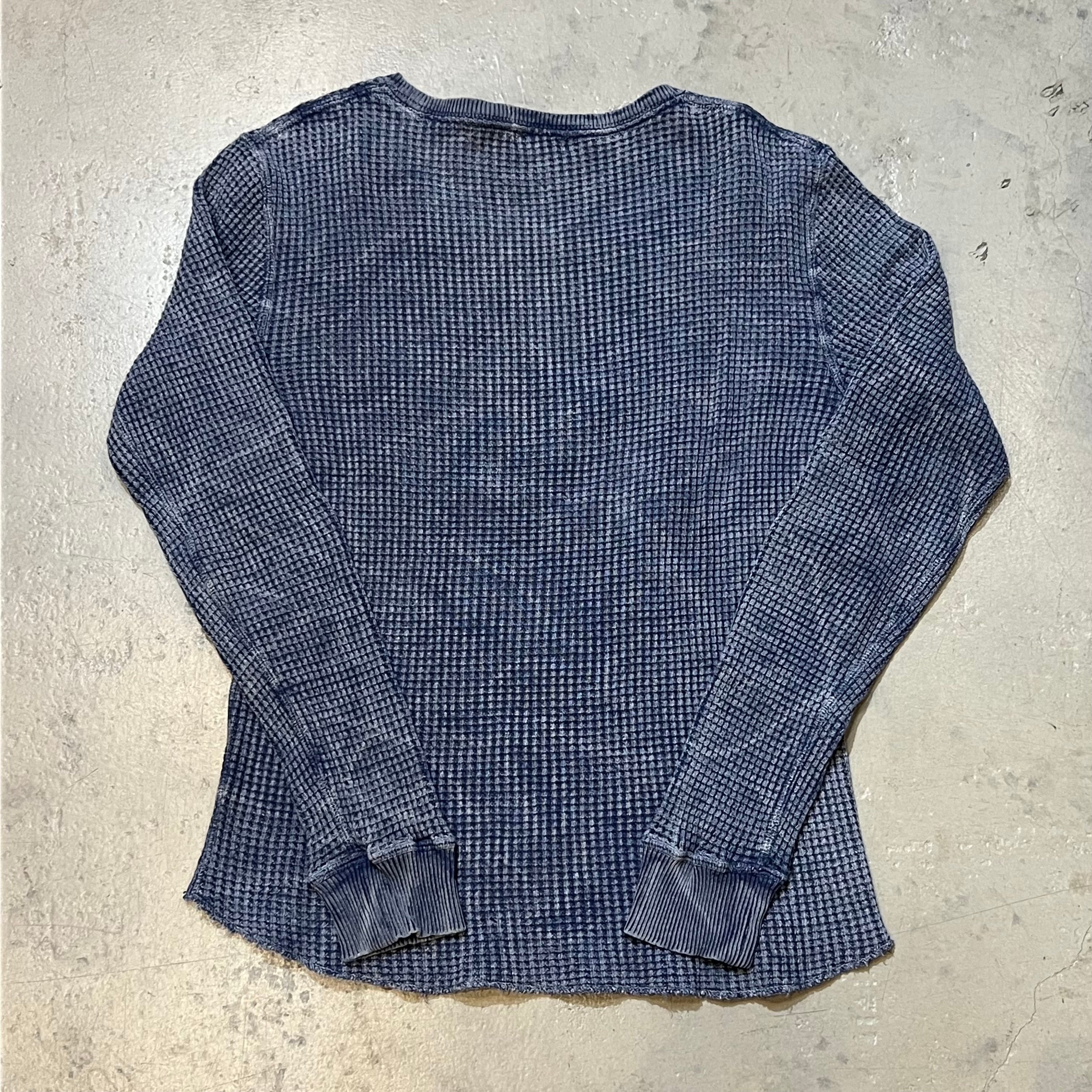 古着のサーマルに刺繍を縫い付けサイズやカラーそれぞれ異なる1点ものの商品となっております。
