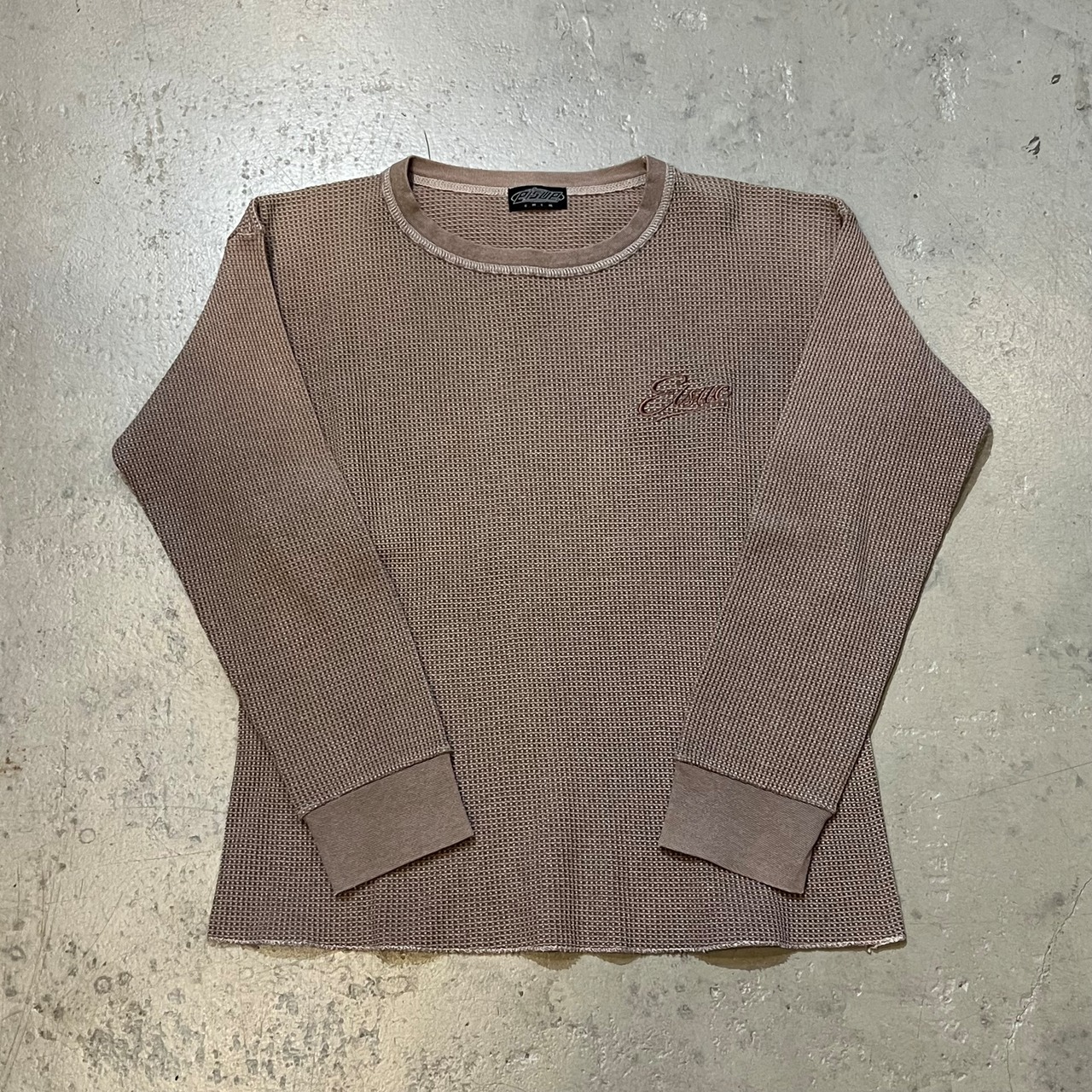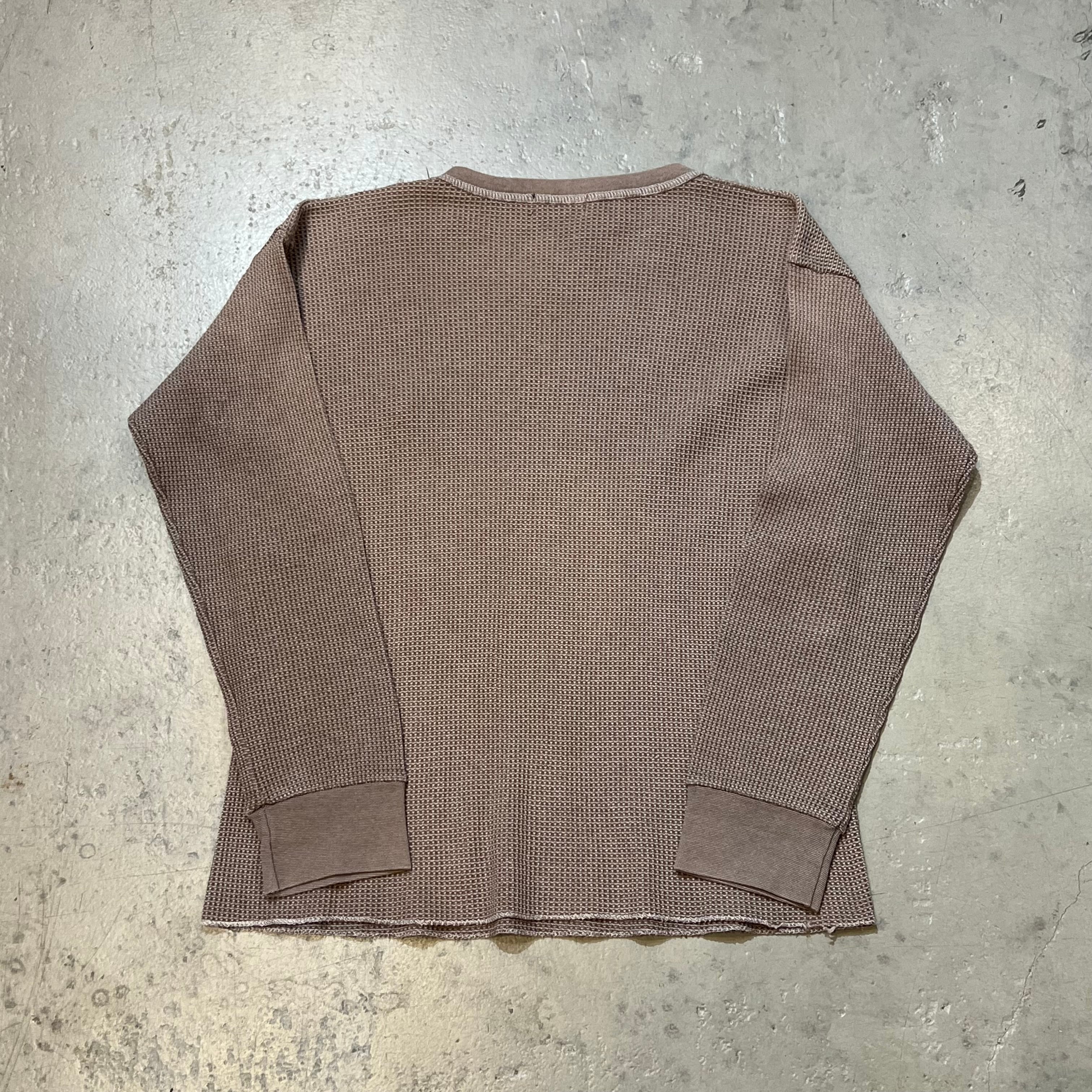 古着のサーマルに刺繍を縫い付けサイズやカラーそれぞれ異なる1点ものの商品となっております。